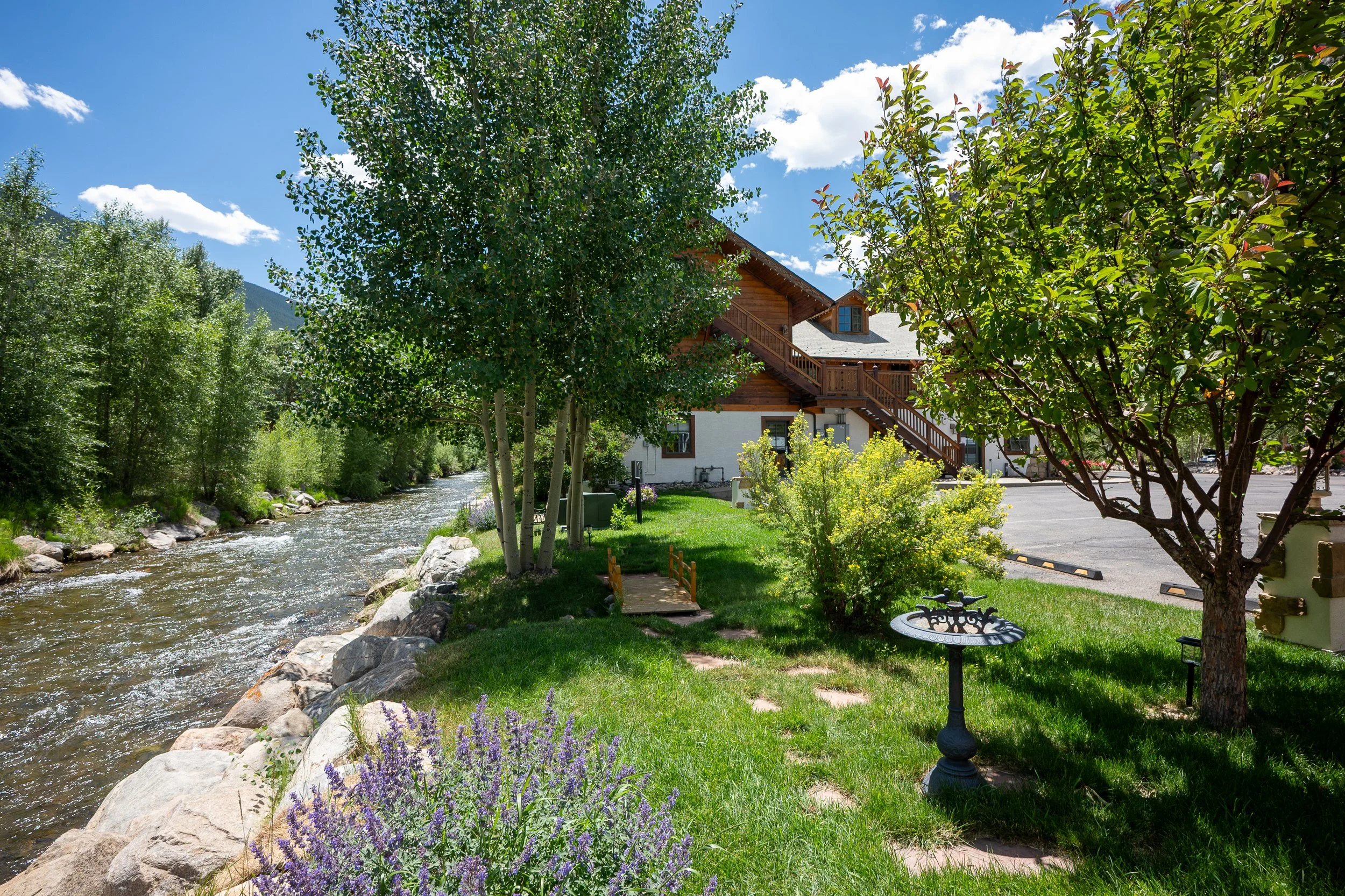 Our property rests on the edge of a crystal-clear creek, offering a serene, natural backdrop that flows gently year-round. Framed by sweeping mountain views and surrounded by lush beauty in every season, it’s a peaceful haven for reflection and connection with nature.